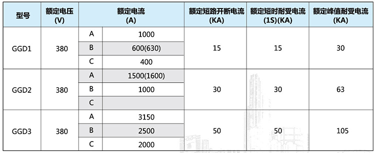 GGD型低压成套开关设备按用途可分为受电柜、母线联络柜、馈电柜、电动机控制柜、无功功率^尝柜和照明配电柜等。该结构具有分断能力高、动热稳定性好、设计灵活、组合方便、系列性实用性强、结构新颖、防护等级高等特点。